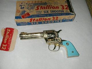 Gun. I don't know why the regular Stallion 32 box and end flap were put into this pose, but there they are. The turquoise grips were known to be on other guns of the Jacksonville era as well. |