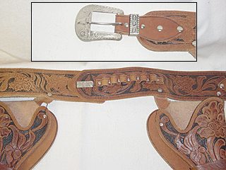 No tears or breaks on this quality set. The inset, again, shows the quality silver belt buckle.