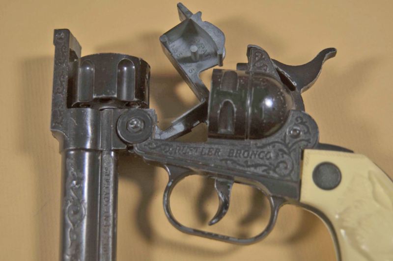 This photo shows how the cap box rotates out. It's a good thing they didn't allow you to take it completely out of the gun, as little kids would have invariably lost it! I would have.