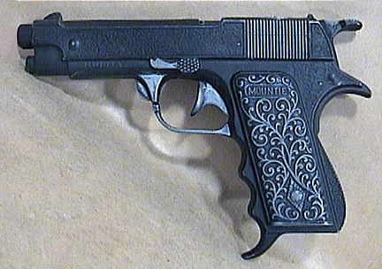 Here's the other side, showing the name, "MOUNTIE." I guess a .357 version would have been a "Mountie Python."