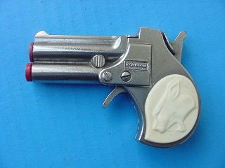 Here's a good side view of this Cap Gun. It's not quite like what we think of as the "Classic Derringer" which was named after its inventor, Mr. Deringer. (one "R")