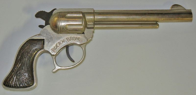 There are not really very many Cap Guns that say one thing on the right side and another thing on the left side of the gun. This is one of them. Here it is BUCK 'N BRONC. This one is in great shape.