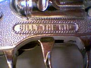 Here's what really makes this gun special, the signature: "BILLY THE KID." I didn't have room for a photo of the grips, but they appear to have a buffalo on them in high relief.