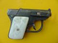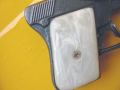 with outstanding mother of pearl grips. This is a detective-style automatic